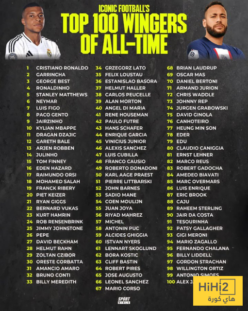 هاي كورة- كشف موقع  Iconic Football  عن قائمة باسماء افضل 100 جناح في تاريخ كرة القدم .