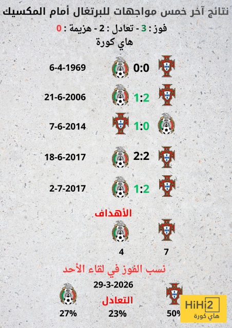 نتائج آخر خمس مواجهات بين البرتغال والمكسيك