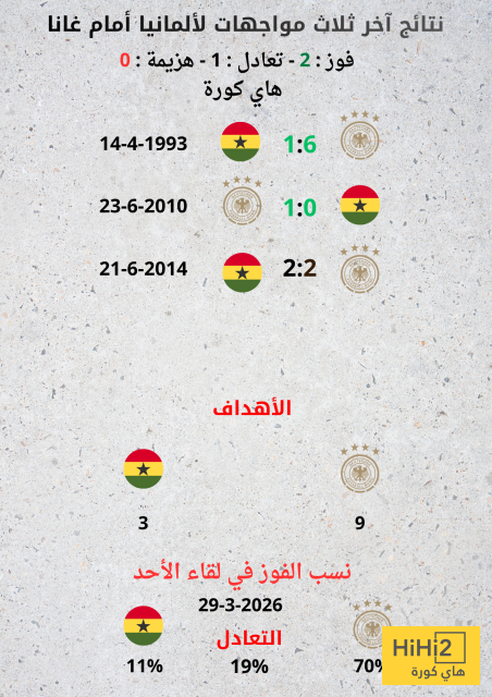 نتائج آخر ثلاث مباريات لألمانيا أمام غانا