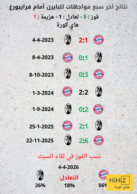 نتائج آخر سبع مواجهات للبايرن أمام فرايبورغ