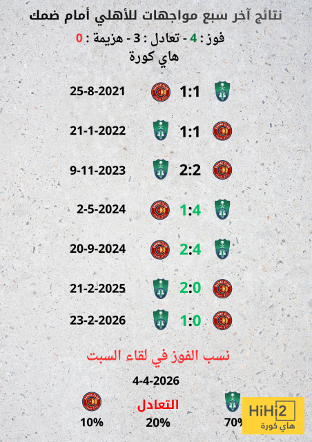 نتائج آخر سبع مواجهات للأهلي أمام ضمك