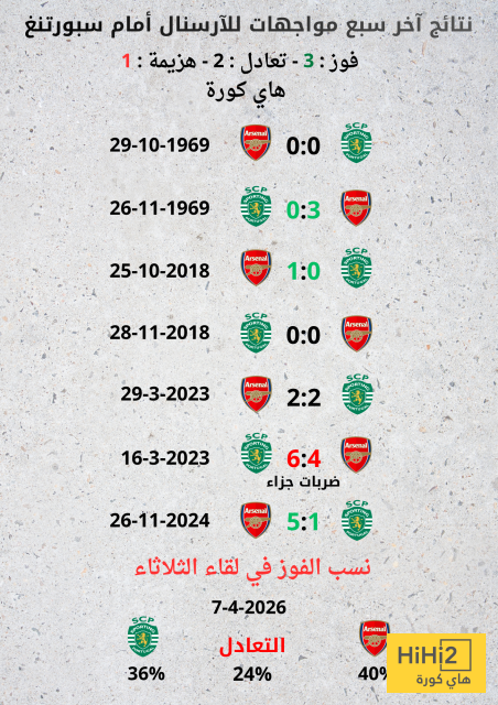 نتائج آخر سبع مواجهات لآرسنال أمام لشبونة