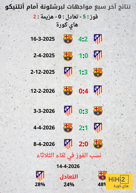 نتائج آخر سبع مباريات لبرشلونة أمام أتلتيكو