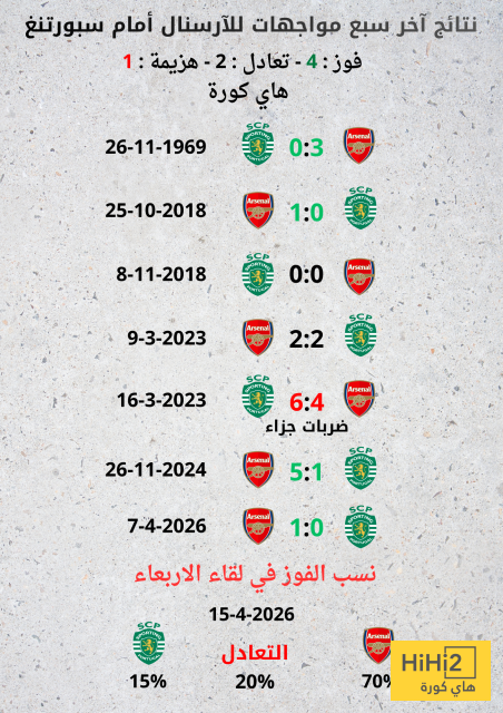 نتائج آخر سبع مواجهات لآرسنال أمام لشبونة