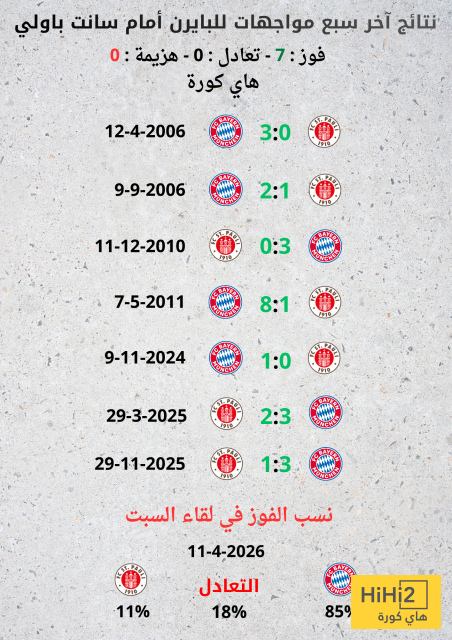 نتائج آخر سبع مباريات للبايرن في مواجهة سانت باولي