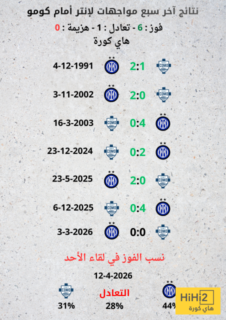 نتائج آخر سبع مواجهات للإنتر أمام كومو