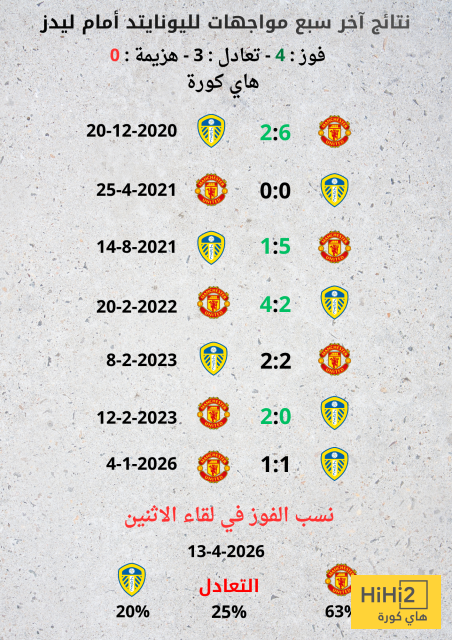 نتائج آخر سبع مواجعات لمانشستر يونايتد أمام ليدز