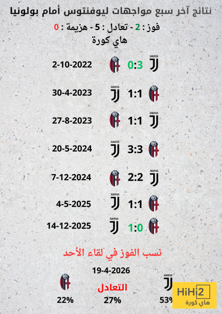 نتائج آخر سبع مواجهات ليوفنتوس أمام بولونيا