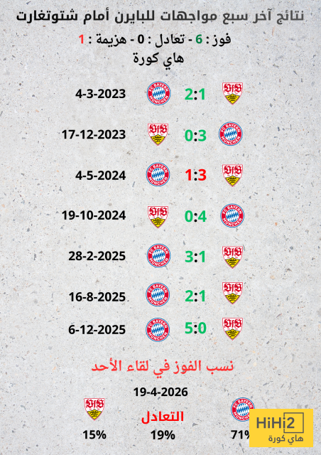 نتائج آخر سبع مواجهات لبايرن ميونيخ امام شتوتغارت