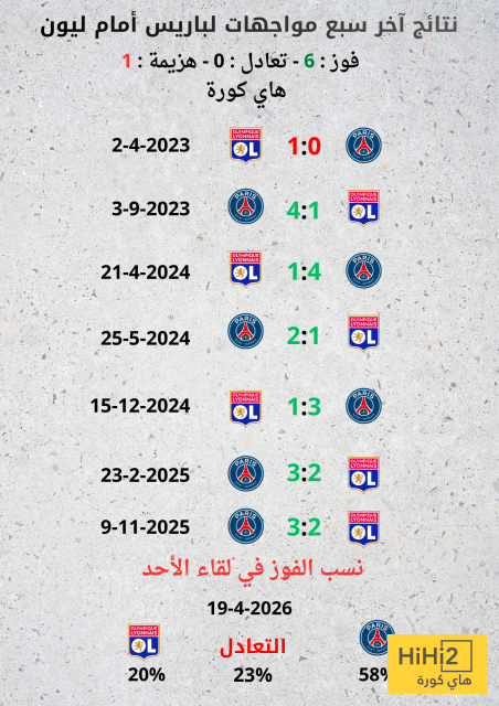 نتائج آخر سبع مواجهات لباريس أمام ليون