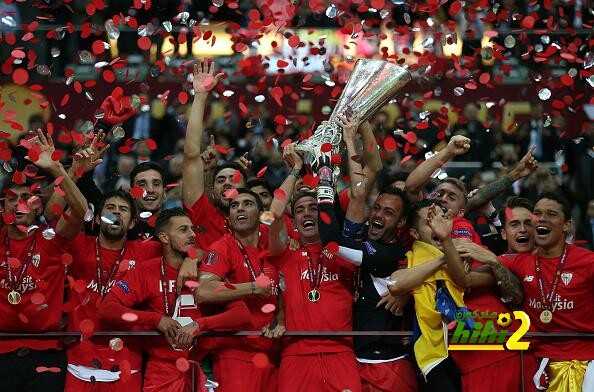 فرحة لاعبي اشبيلية بالتقدم على فيورنتينا بهدفين